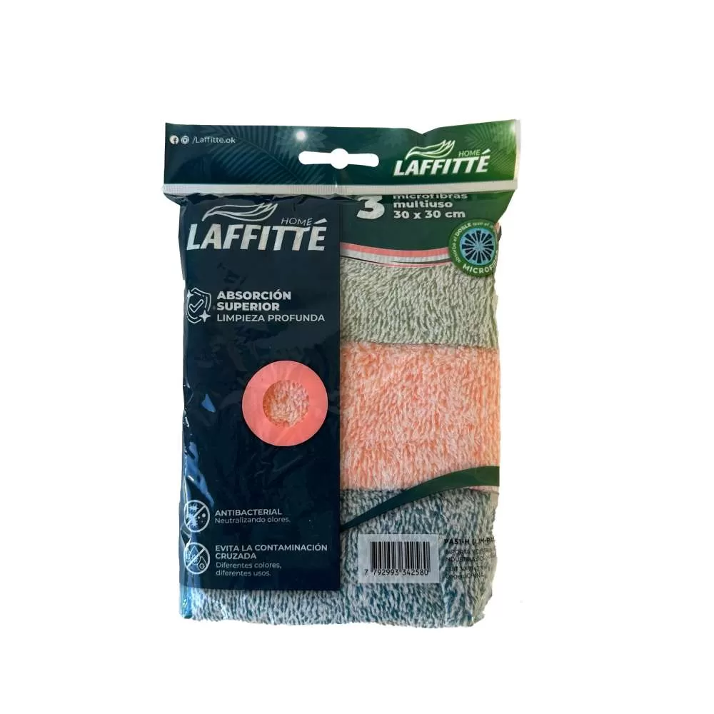PAÑO MICROFIBRA PACK x 3 MULTIUSO ULTRA ABSORBENTE 30X30 CM